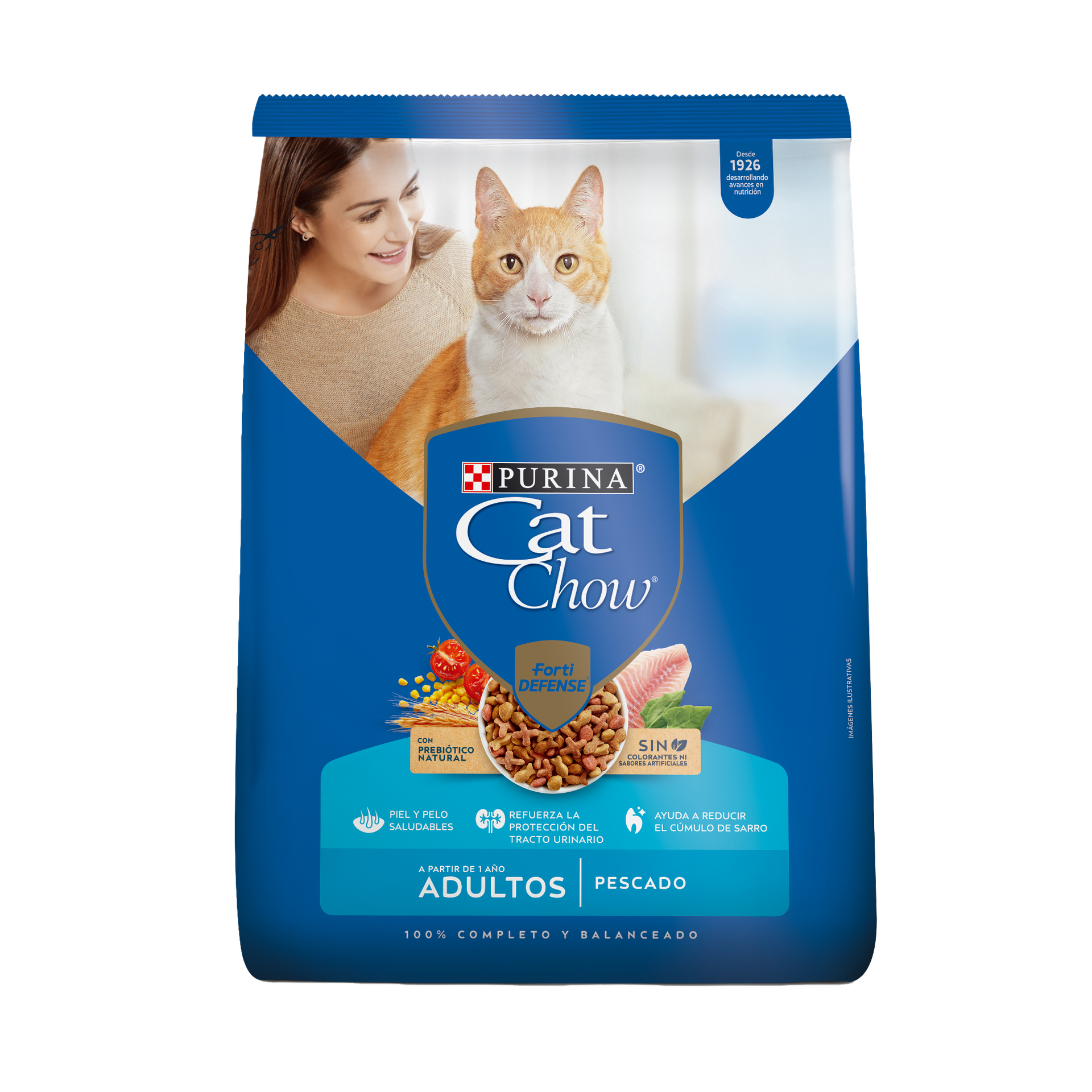 Una buena nutrición es fundamental para proteger la salud de los gatos. Es por eso que desarrollamos PURINA® CAT CHOW® con FORTI DEFENSE, elaborado con una selección de ingredientes naturales y mejorado con la inclusión de un prebiótico natural. Forti Defense, una combinación exclusiva de prebiótico natural, antioxidantes, vitaminas y minerales que ayudan a fortalecer las defensas naturales de tu gato.