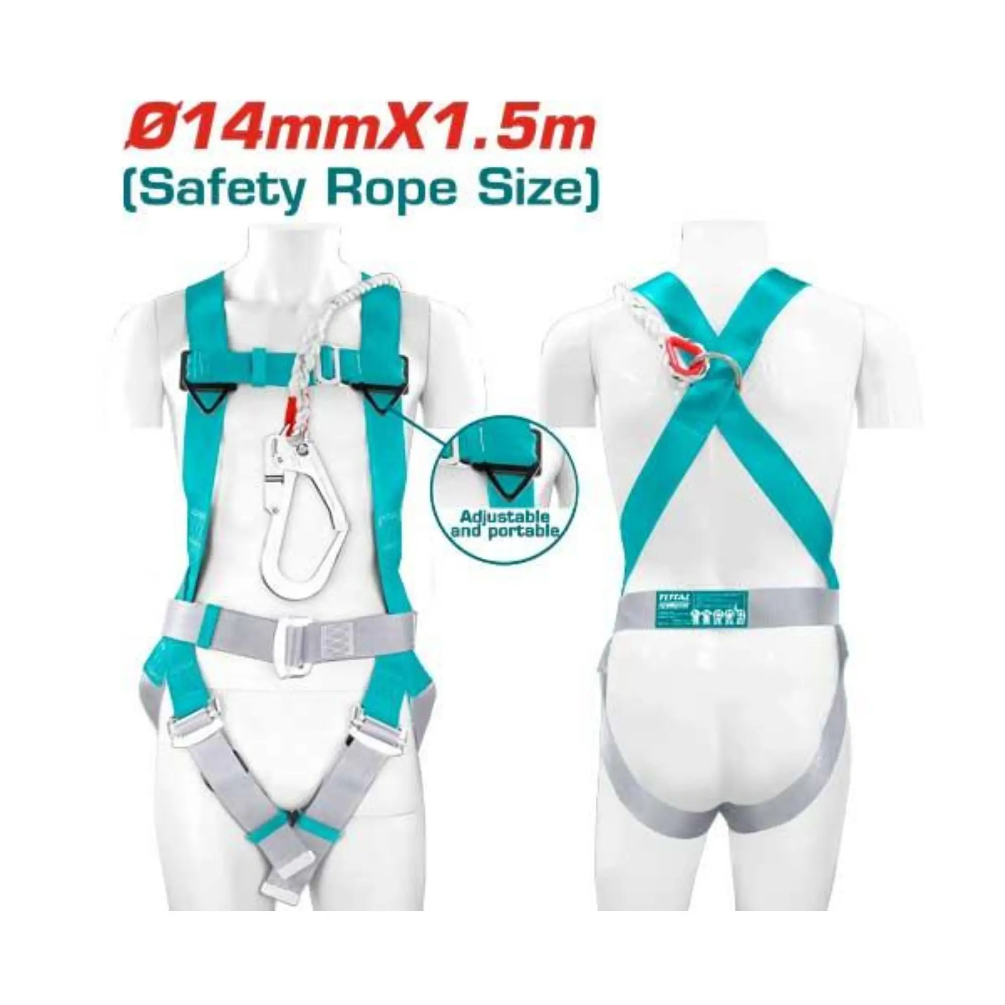 Arnés de Seguridad de 1 Punto de Fijación y 4 de Ajuste 14mm x 1.5m Total