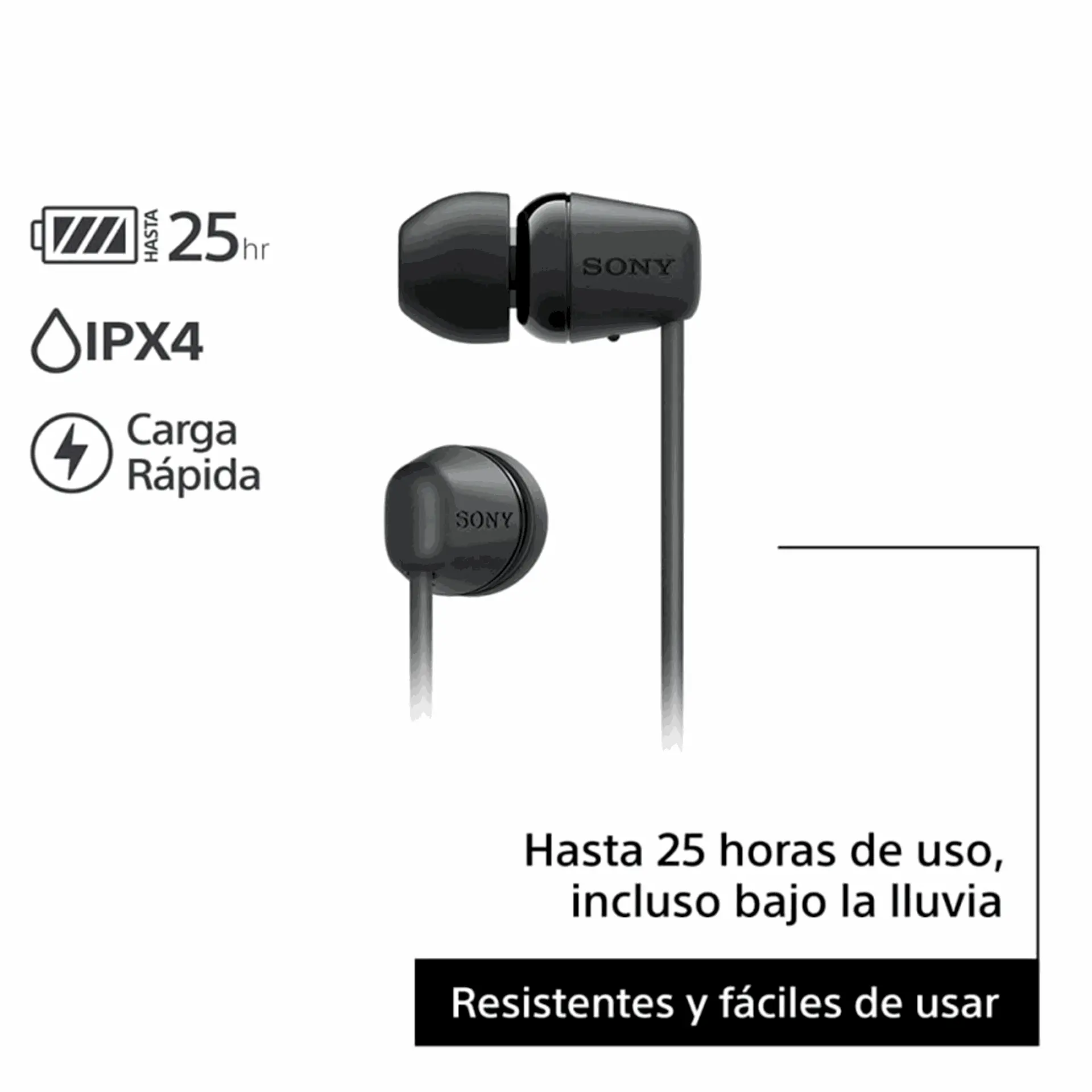 – Larga duración de batería de hasta 25 h. Disfruta hasta 25 horas de música sin interrupciones.