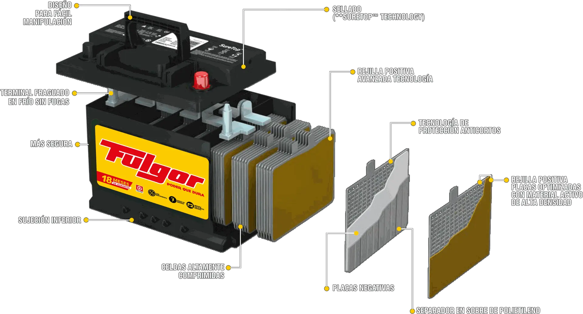 – Contenido del empaque: 1 batería. Fulgor.