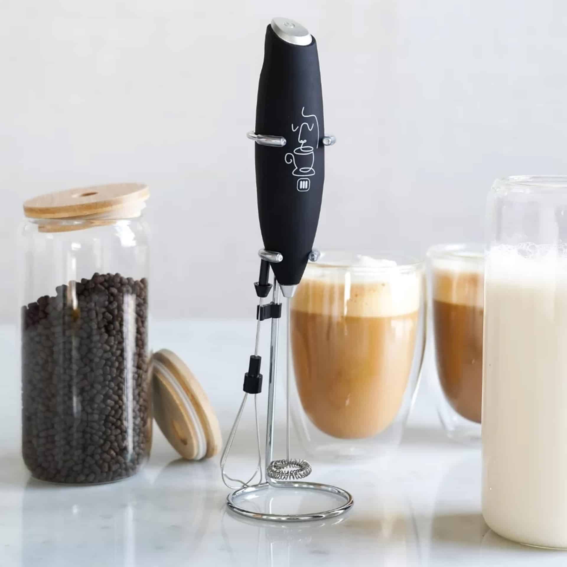 Este batidor pequeño y elegante es el aliado perfecto en tu cocina. Con su doble función, puedes espumar leche para tus bebidas frías o calientes favoritas, y batir pequeñas preparaciones con facilidad.