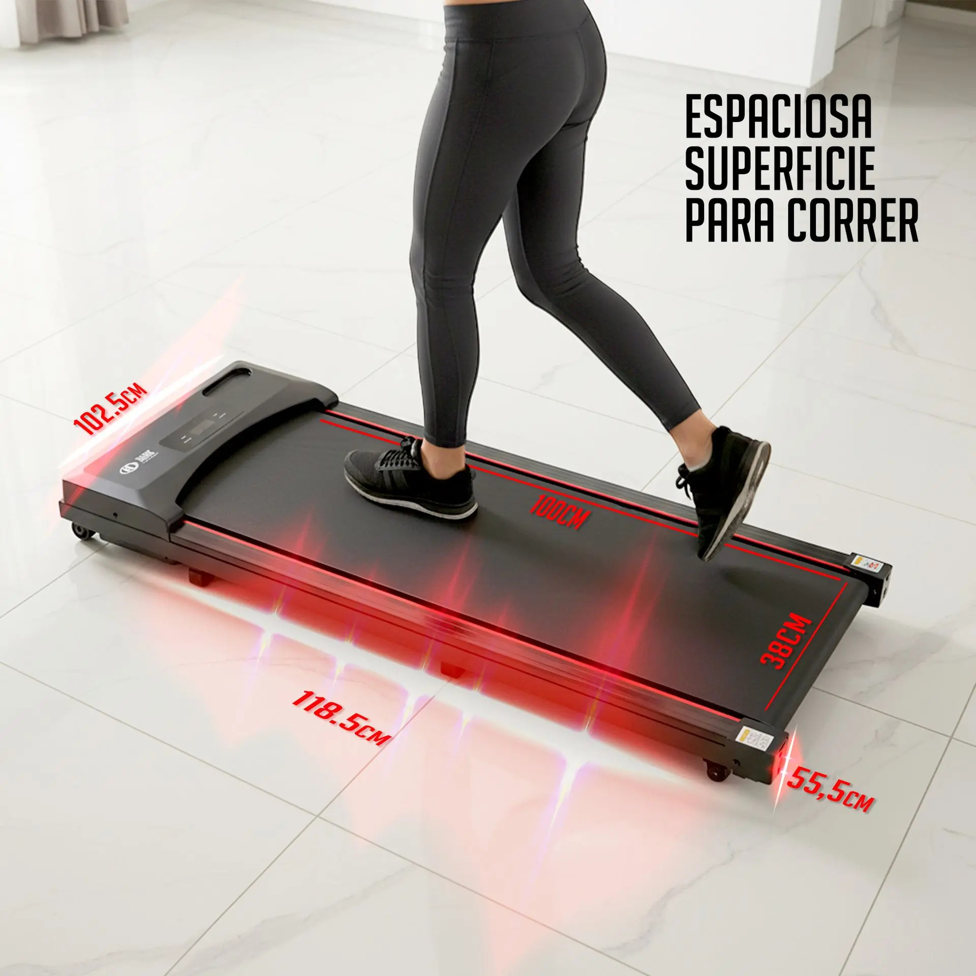-Área de carrera: Espaciosa superficie de 1000 x 380 mm que garantiza comodidad al caminar o correr.