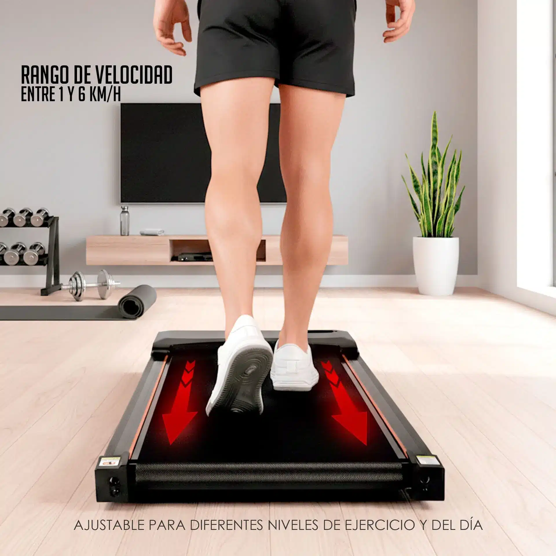 -Rango de velocidad: Ajustable entre 1-6 km/h, ideal para diferentes niveles de ejercicio.