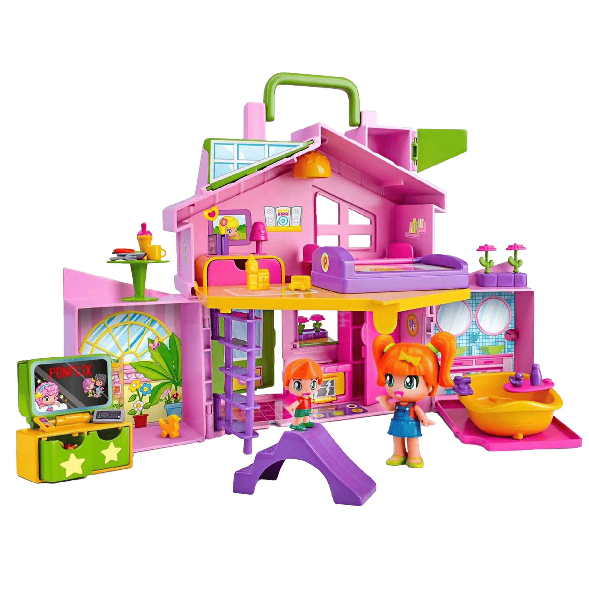 Casa Juguete para Niñas. La casa rosa es una casita de muñecas totalmente amueblada y convertible en un maletín para transportarla; su forma de maletín es adecuado para guardar todos los juguetes y accesorios dentro y llevártelo donde quieras para jugar