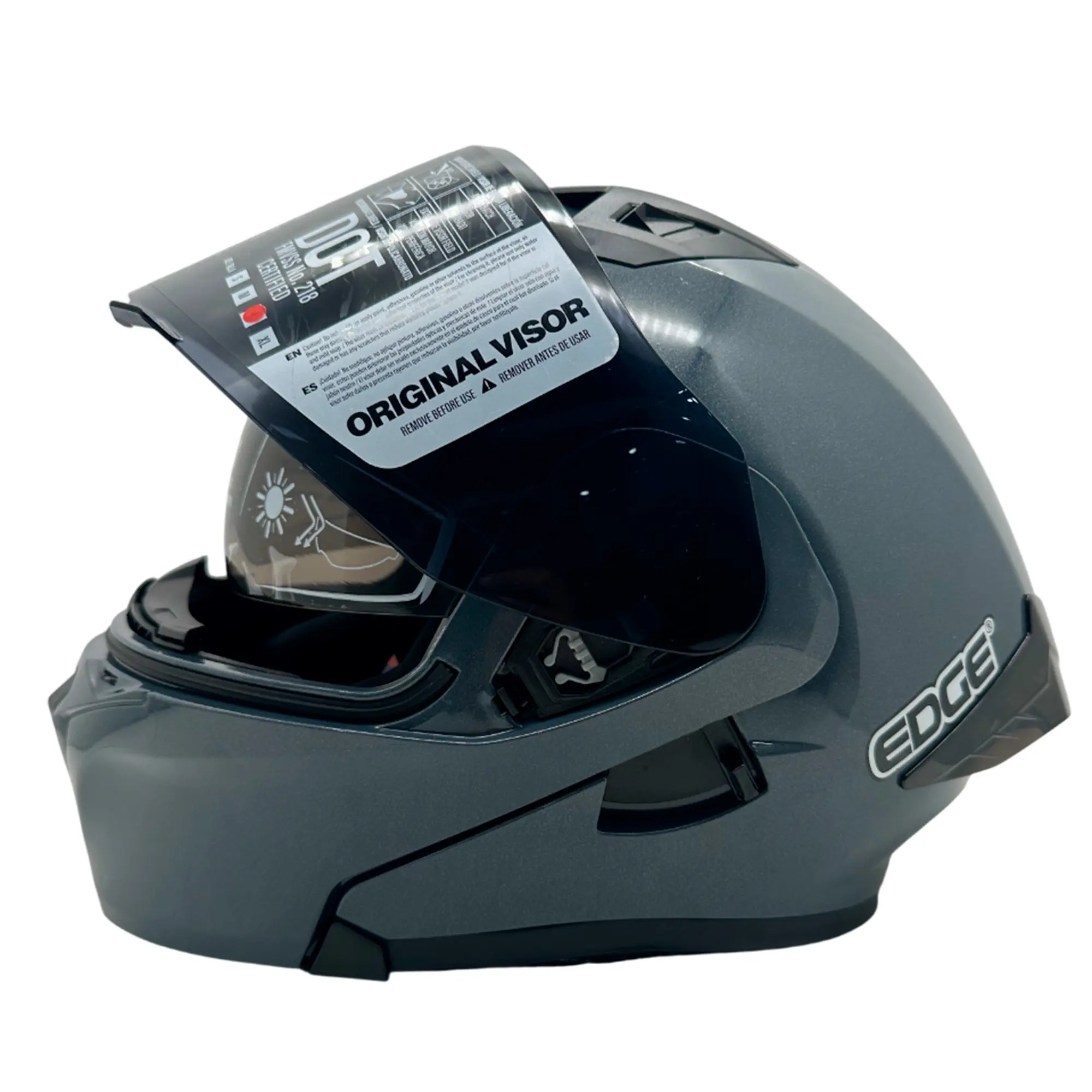 Casco modular de Moto con CERTIFICADO DOT, diseño moderno aerodinámico optimizado para la reducción del ruido del viento y el arrastre del viento a altas velocidades, avalando la resistencia y aprobación los más altos estándares de seguridad según el Departamento de Transito de Estados Unidos.