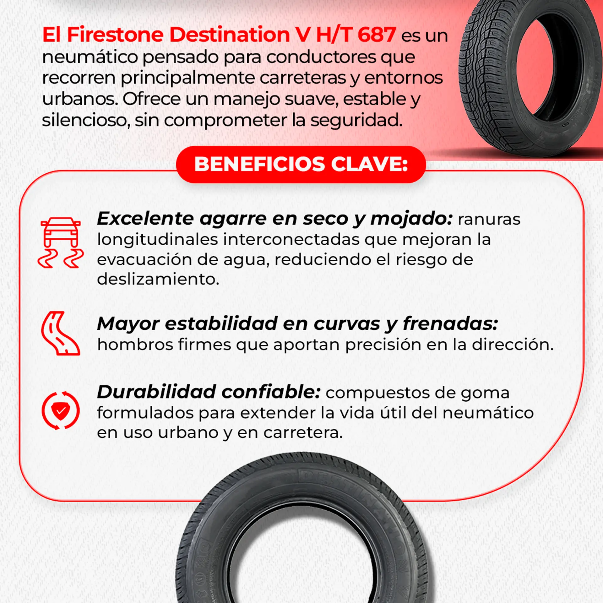 -Tracción confiable en superficies mojadas y secas.