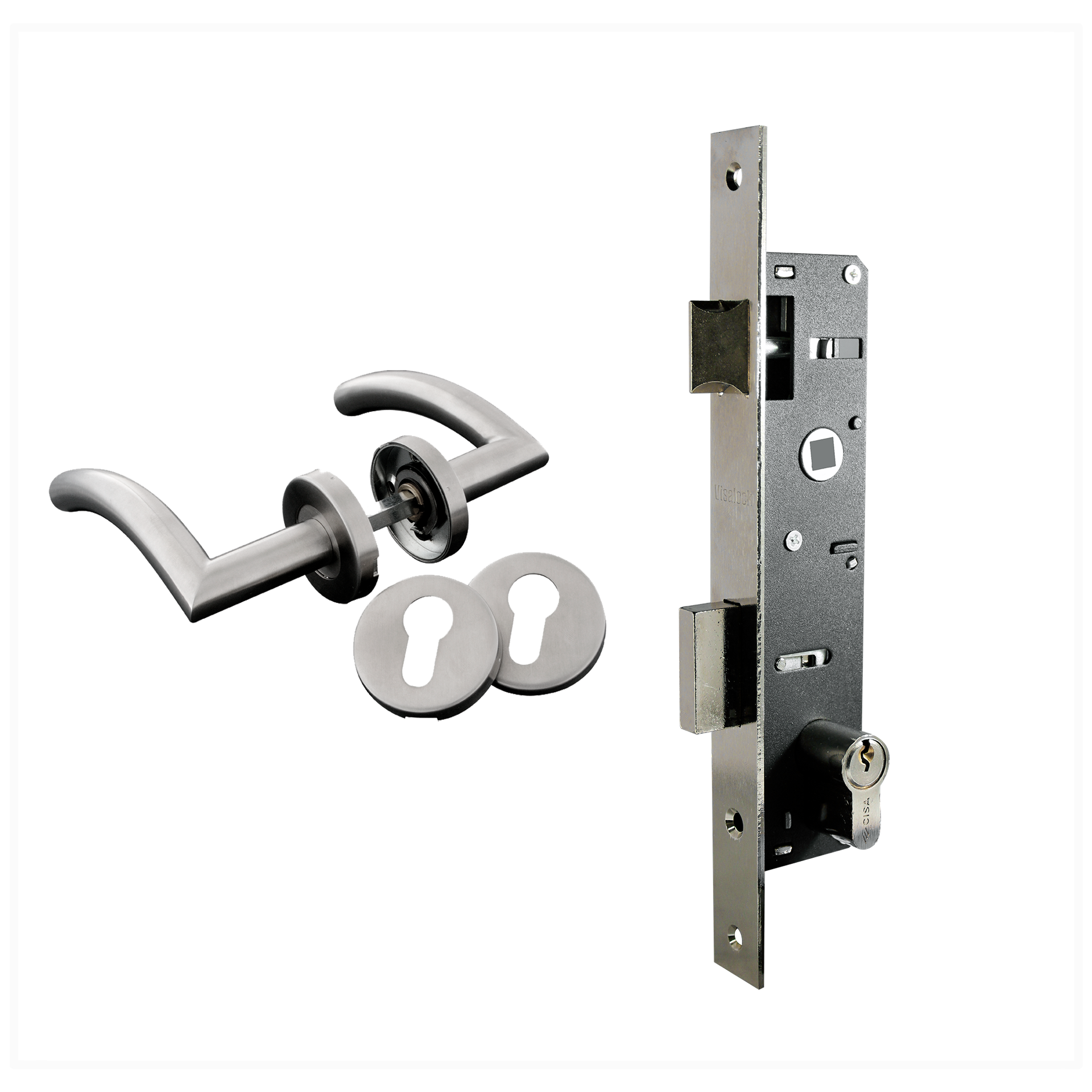 Cerradura para Embutir Palermo Acero Niquelado 20mm + Manilla para Puerta 2551 Acero Inoxidable Visalock