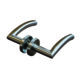 – Funcionamiento: Al girar cualquiera de las manillas se acciona el pestillo tirador de la cerradura de embutir.