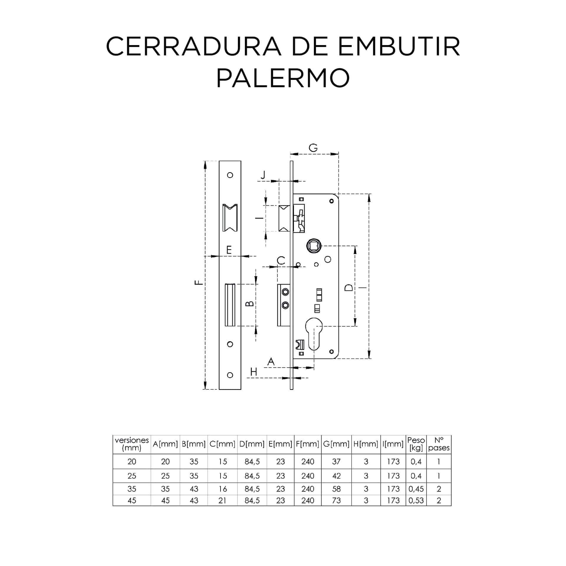 Cerradura para Embutir Cisa Palermo 35mm: