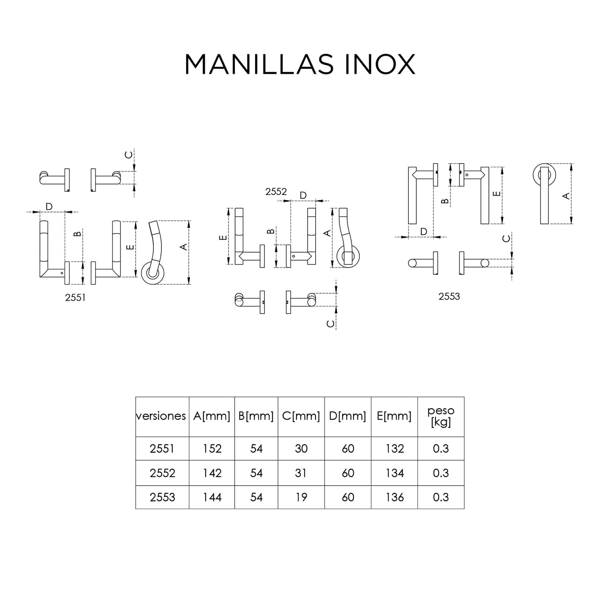 – El juego de manillas está compuesto por dos palancas móviles (la externa e interna), para que la puerta pueda ser abierta por ambos lados.