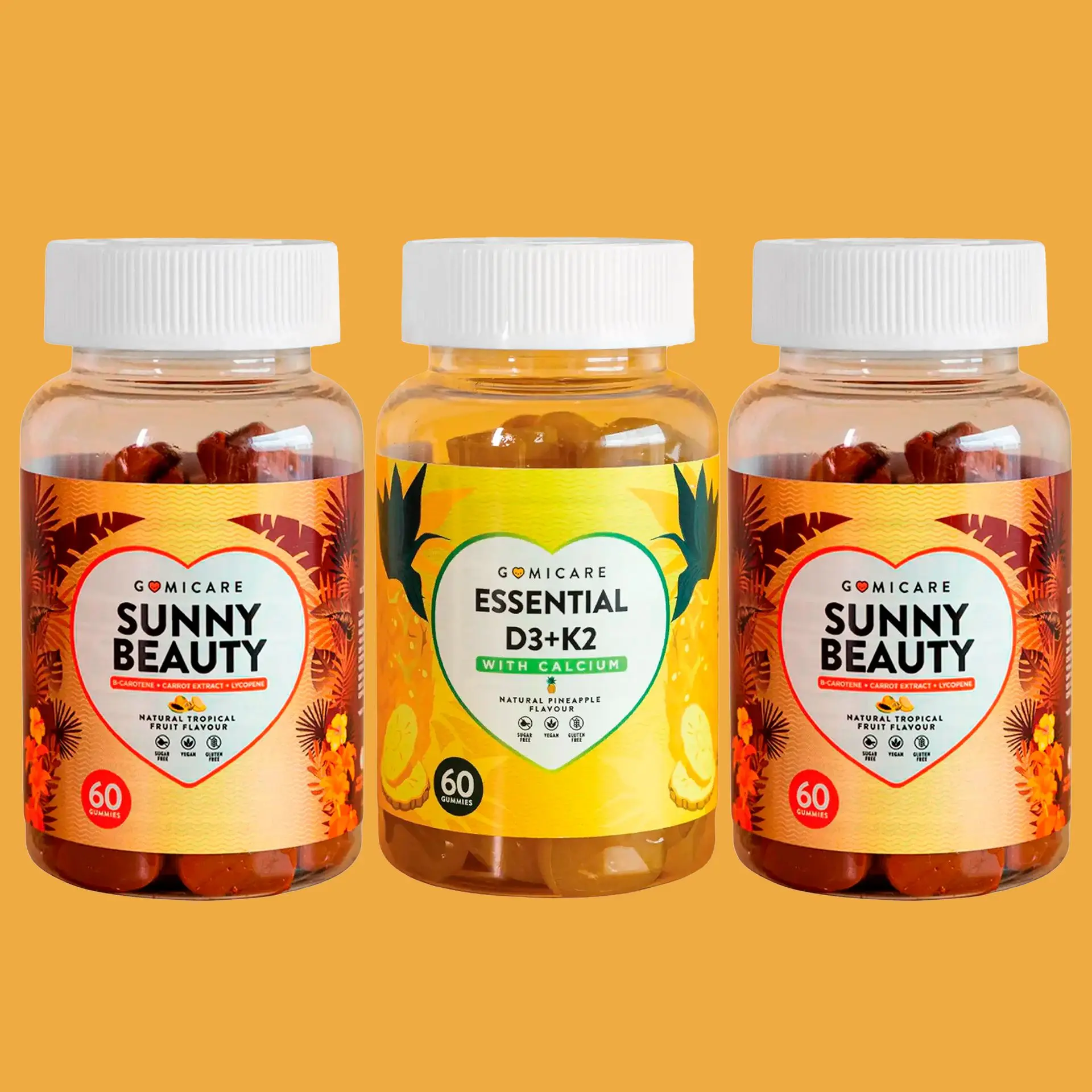 Suplemento para Protección de la Piel Gomicare Sunny Beauty 60 Gomitas 2unds + Suplemento Vitaminas Essential D3 + K2 Gomicare 60 Gomitas 1und