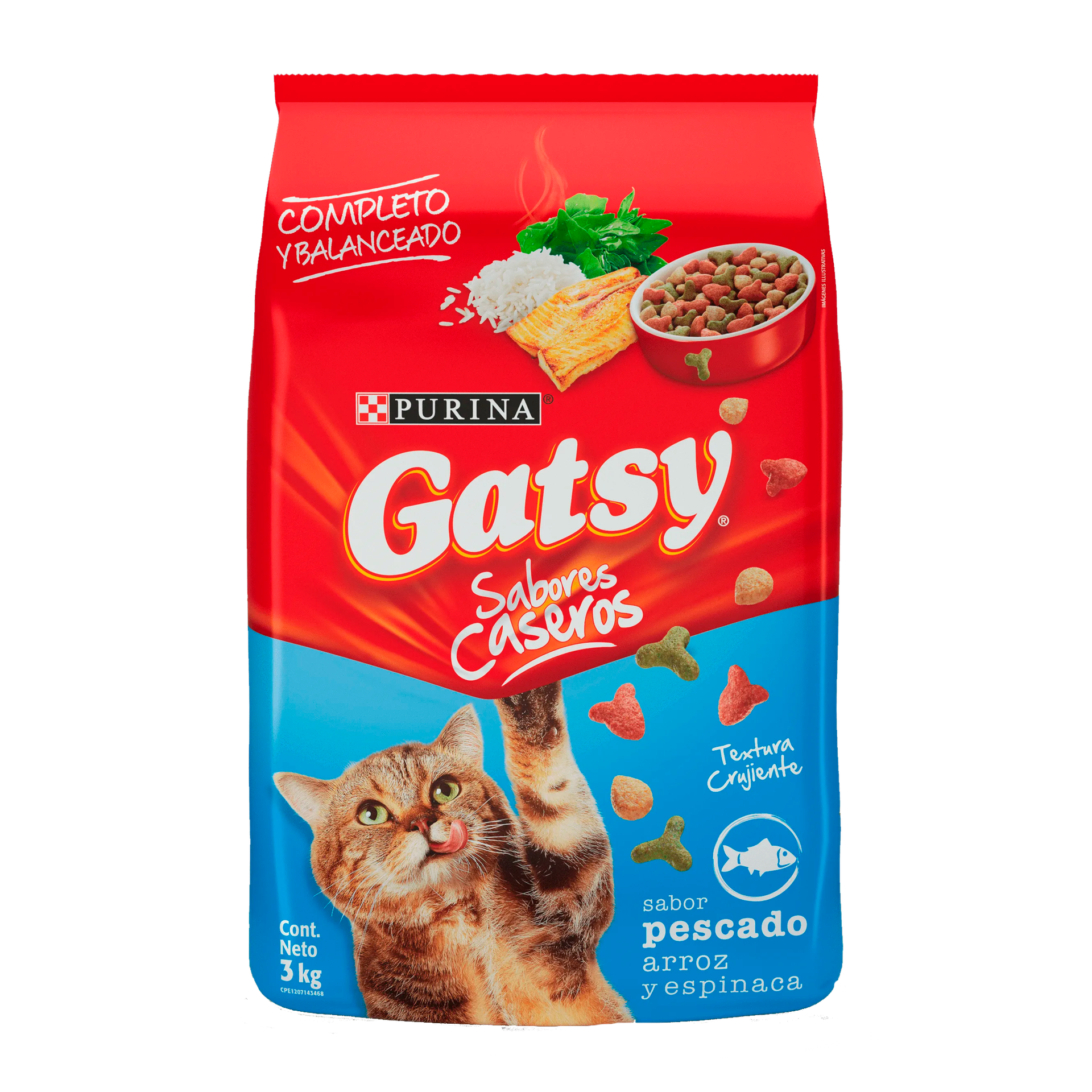 GATSY Alimento para Gatos Adultos Sabor a Pescado Arroz y Espinaca 3kgs