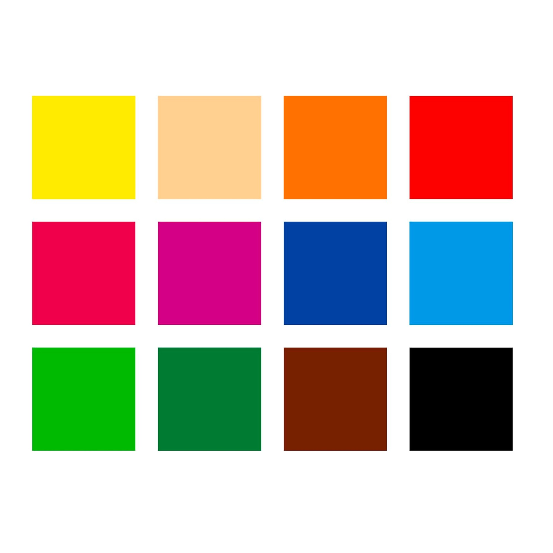– 12 colores brillantes y resistentes a la luz.