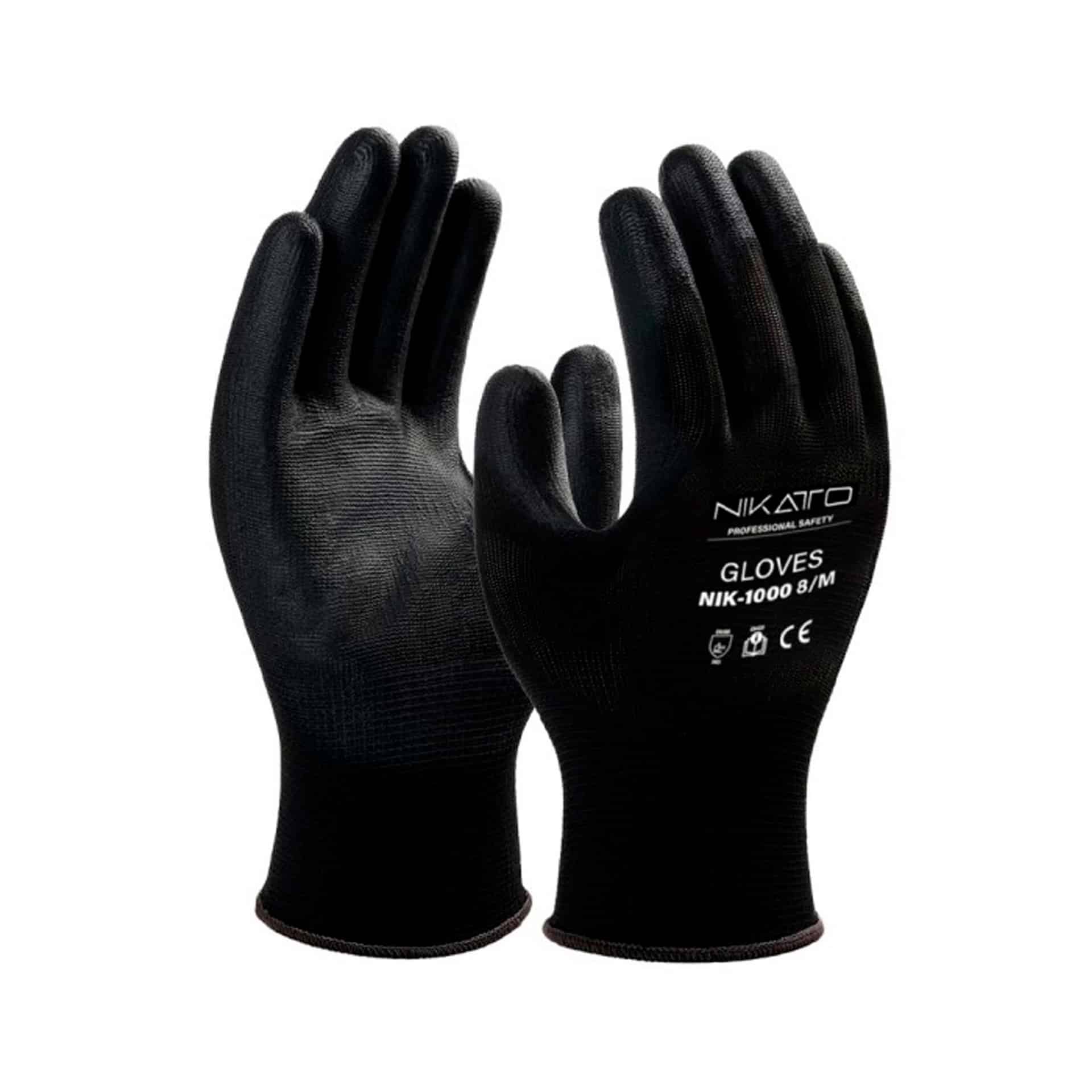 Guantes de seguridad Nikatto realizados en Poliuretano con revestimiento de Latex, ideales para cualquier tipo de trabajo en metalurgica, construcción entre otras.