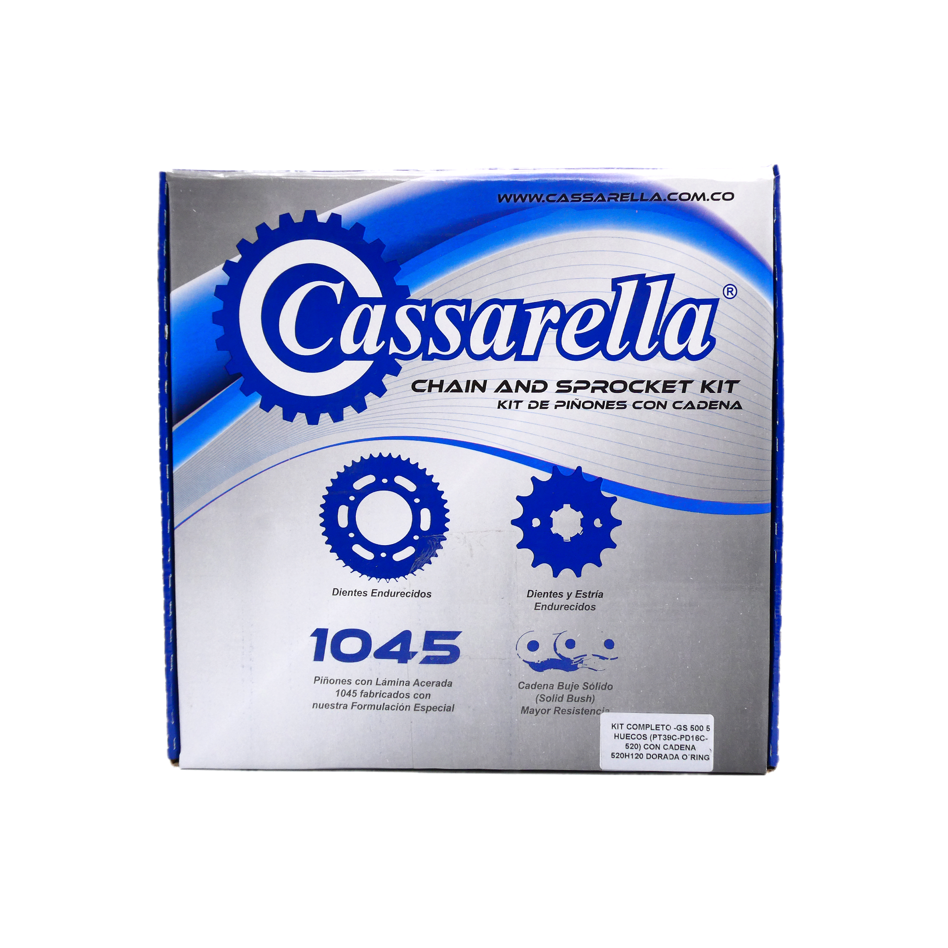 Cassarella ha creado el kit de Piñones, el cual está compuesto por el piñón trasero (PT), piñón delantero (PD), lainas, arandelas (según la referencia) entregados en un novedoso empaque que alarga la preservación del producto, evitando la contaminación por factores del medio ambiente, polvo, lluvia etc.