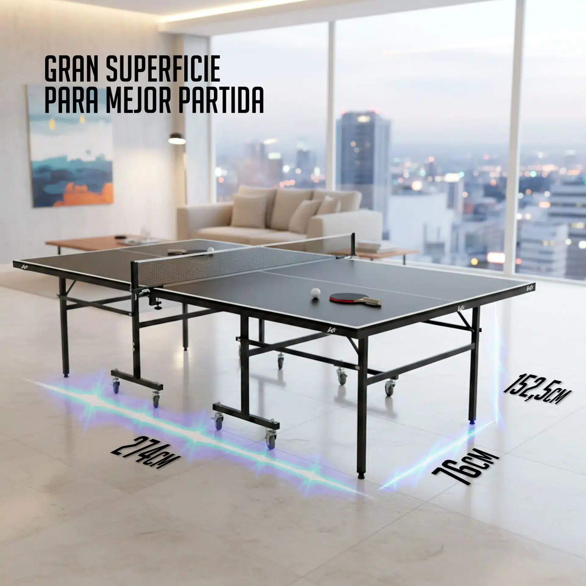 -Dimensiones de la Superficie de Juego: 274 x 152,5 x 76 cm (largo x ancho x alto)