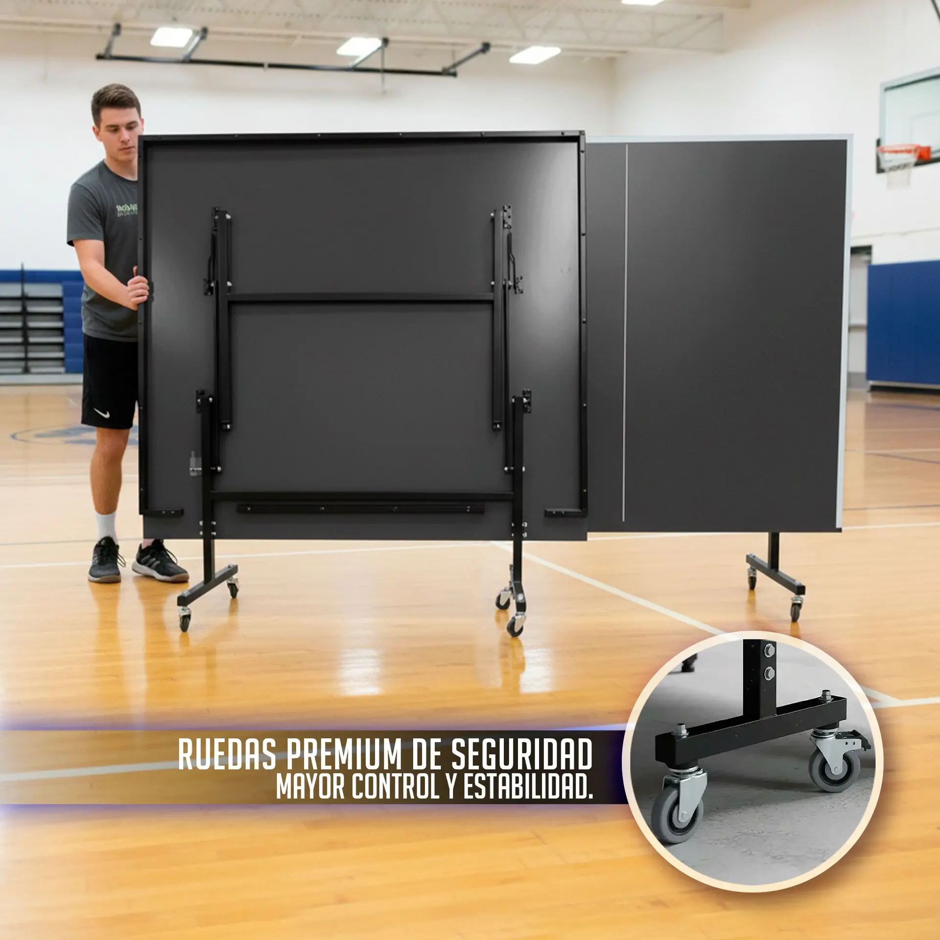 -Movilidad sin Esfuerzo: Equipada con ruedas de 75mm de diámetro, esta mesa se puede trasladar y guardar fácilmente, liberando espacio cuando no está en uso.
