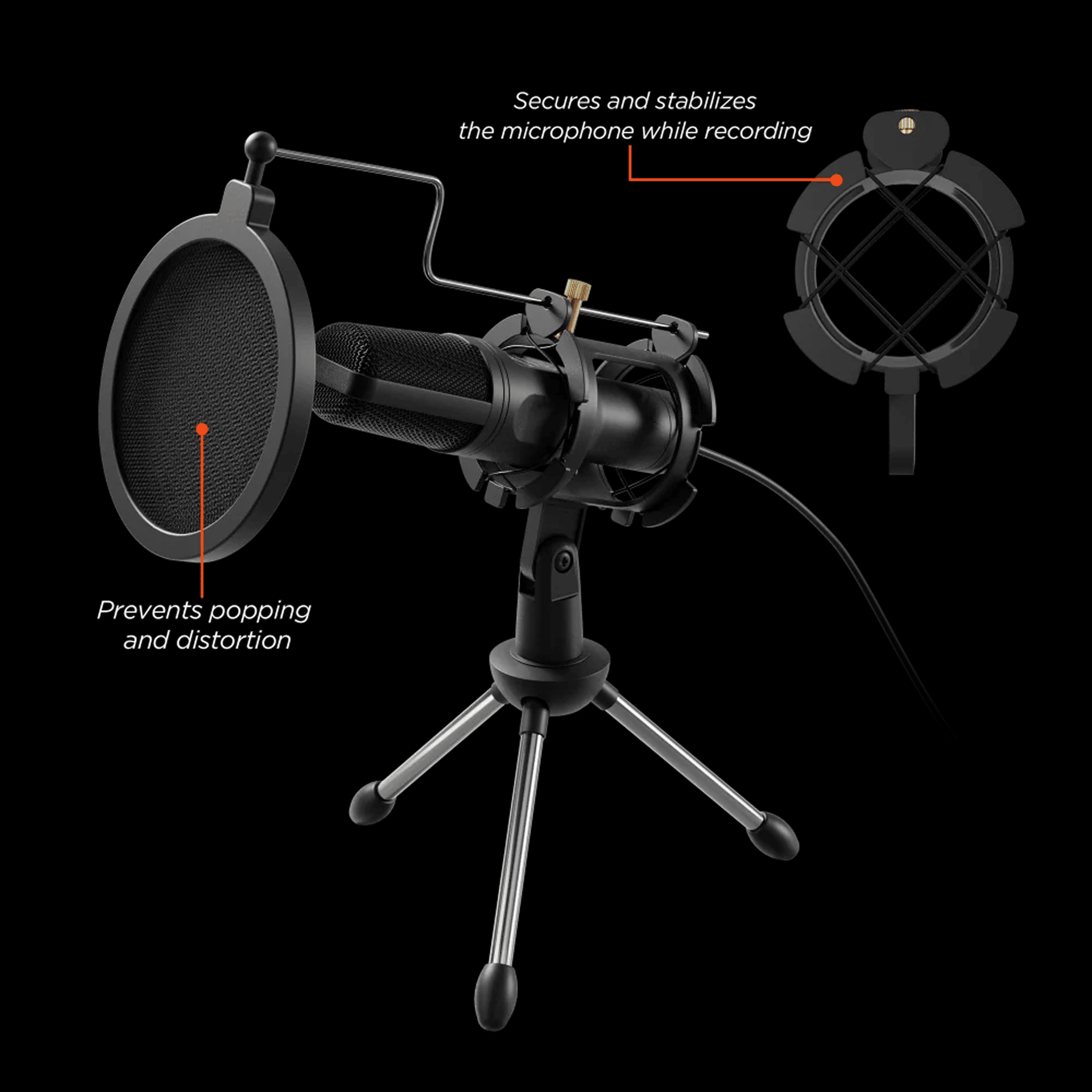 -Ajústelo a la altura o ángulo perfecto y gire el micrófono a la posición deseada sin que se tambalee.