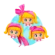 -Incluye: 1 muñeca Pinypon de gran tamaño con pelo amarillo, vestido rosa y zapatos azules, 1 aplicador de líquido morado con purpurina, 2 extensiones de pelo de color morado, 1 lazo rosa para la cabeza, 6 adornos para el pelo, 1 hoja de pegatinas variadas, 1 hoja de pegatinas de ojos y 1 hoja con varios brillantes.