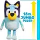 ¡Conoce a Bluey! Un adorable perro Blue Heeler de seis años, cuya vida familiar cotidiana se convierte en una aventura lúdica. Este peluche de Bluey de tamaño jumbo de 18 pulgadas es tan suave y trae diversión e imaginación al mundo de tu hijo mientras recrean algunos de los momentos más memorables del espectáculo.