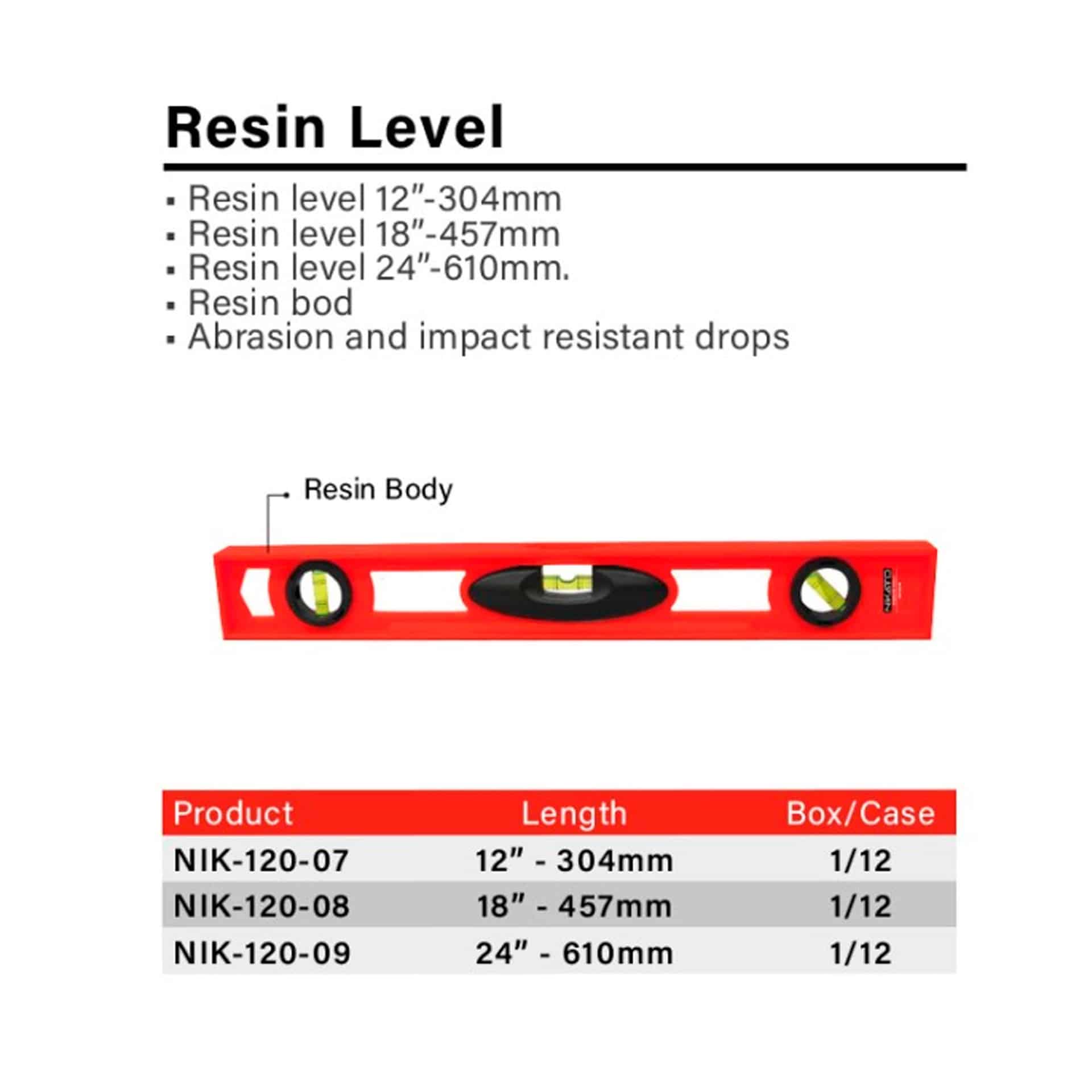 Nivel de medición Nikatto elaborado en resina de alta calidad y resistencia, ideal para verificar la inclinación de una superficie de manera vertical, horizontal o invertida.