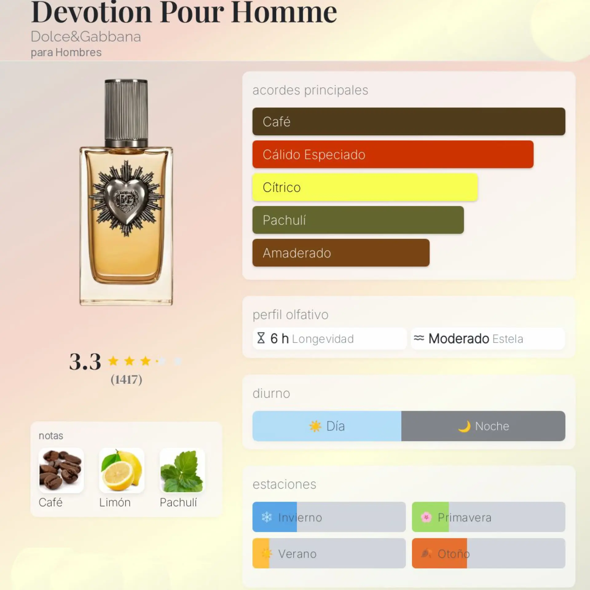 Esta fragancia es una mezcla exquisita de contrastes: cítrica en su salida, dulce en su corazón y profundamente cálida en su base. El perfume Devotion no es solo una fragancia, es un viaje sensorial a través de los valores más profundos de la marca. Esta creación destaca por su carácter Gourmand Brillante, capturando una elegancia que es a la vez clásica y moderna, simbolizada por el icónico sello del Sagrado Corazón en relieve sobre su frasco.