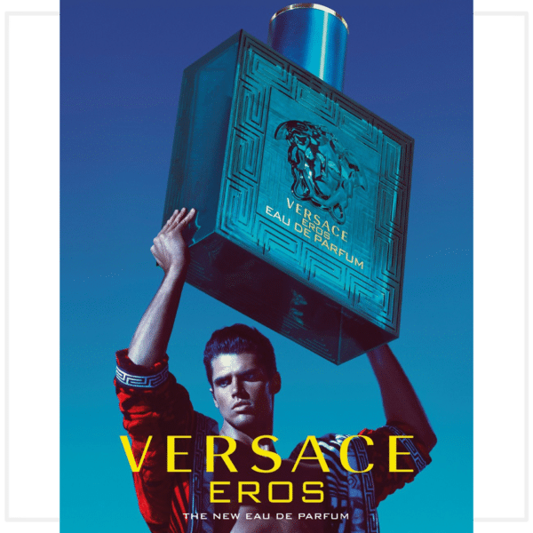 Eros, el dios del amor, capaz de hacer que la gente se enamore de su arco y flechas. Aura brillante con frescura intensa, viva y brillante resultante de la combinación de hojas de menta, ralladura de limón en Italia y no verde. Sensualidad adictiva derivada de las notas orientales y cálidas de tonka, ámbar, grúa y semilla de vainilla. Masculinidad audaz simbolizada por la madera como el cedro de Atlanta y Virginia, vetiver y musgo de roble.