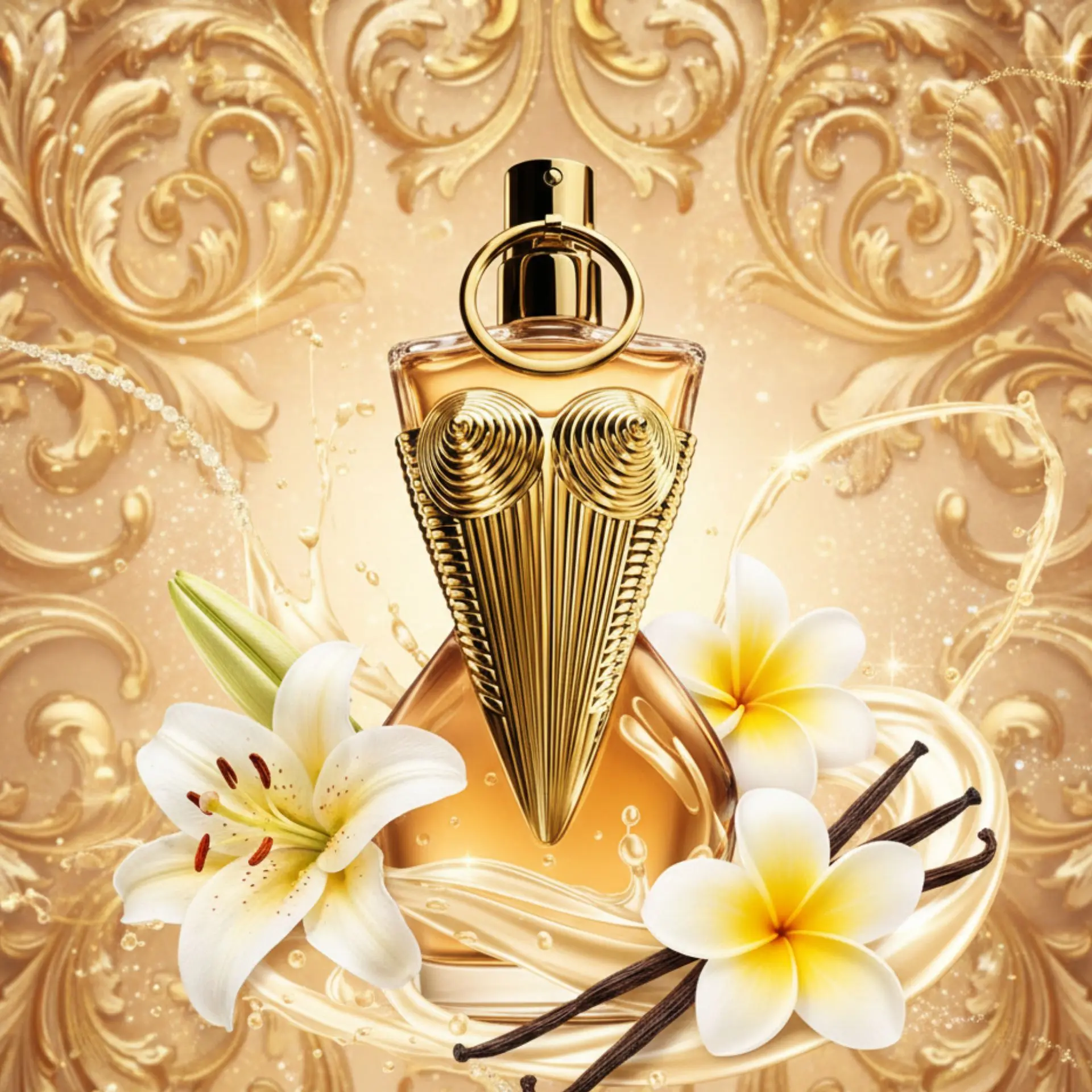 – Notas de Fondo : Vainilla, merengue y pachulí. El merengue le da un dulzor aireado, no pesado, que se funde con la piel.