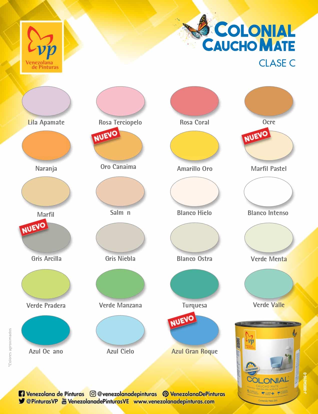 AMARILLO ORO, ANARANJADO, AZUL CIELO, AZUL OCÉANO, BLANCO, BLANCO INTENSO, GRIS ARCILLA, MARFIIL, MARFIL, MARFIL PASTEL, MARFIL*, OCRE, ORO CANAIMA, ROSA CORAL, SALMÓN, SALMON*, TURQUESA, VERDE MANZANA, VERDE MENTA, VERDE PRADERA