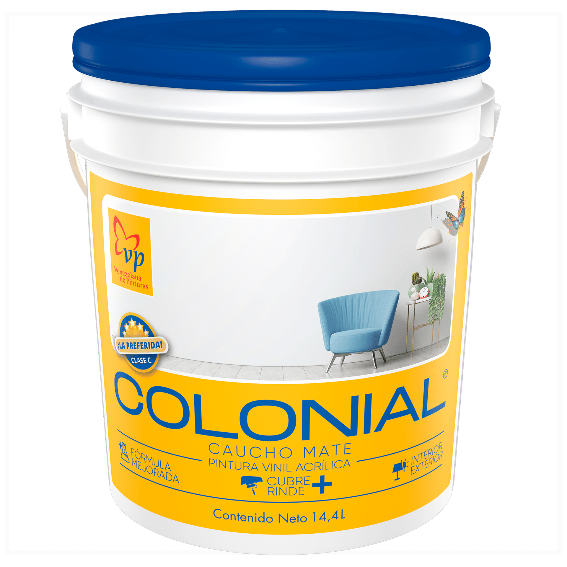 Pintura Caucho VP Colonial. Es una pintura emulsionada elaborada con copolímeros acrílicos modificados y pigmentos seleccionados, que brindan un elegante acabado mate, liso y decorativo. Su uso es Ideal para superficies interiores o exteriores que requieran un revestimiento de calidad, con colores vivos y alegres.