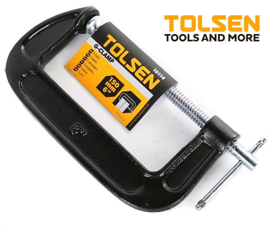 La Prensa Sargento Tolsen de 150 mm (6 pulgadas), también conocida como Prensa Tipo G o Abrazadera Tipo C (G-Clamp), es una herramienta de sujeción robusta utilizada para mantener piezas de trabajo firmemente unidas mientras se pegan, se taladran, se cortan o se sueldan. Es una herramienta esencial en carpintería, metalmecánica y bricolaje.