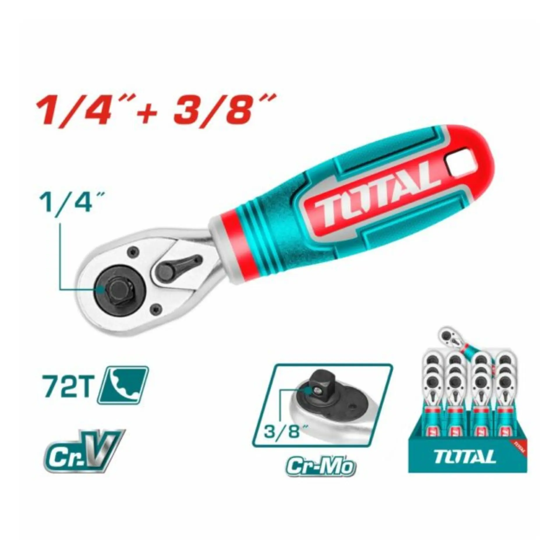 Rachet 2 en 1 Total 1/4″ Dr 3/8″ Dr 72T 140mm
