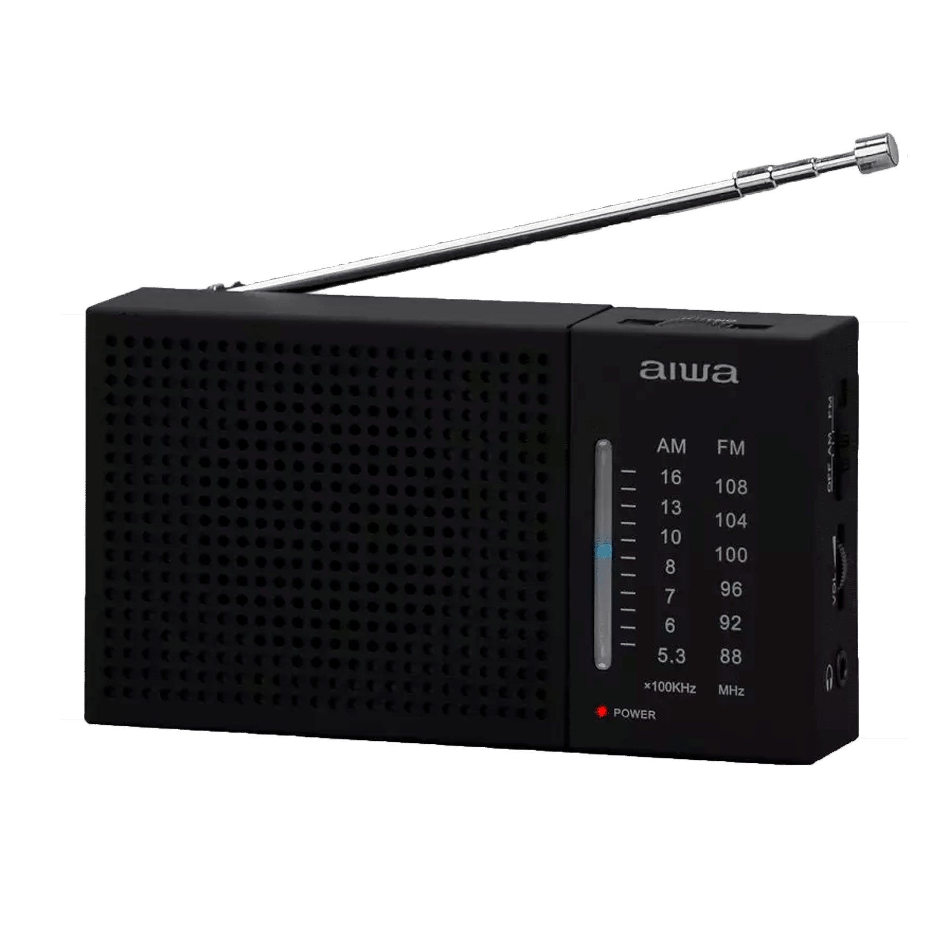 Radio análoga Aiwa Con señal de radio AM-FM, el sonido fuerte y la calidad de sonido de alta fidelidad son perfectamente adecuados para sintonziar lo que desees.