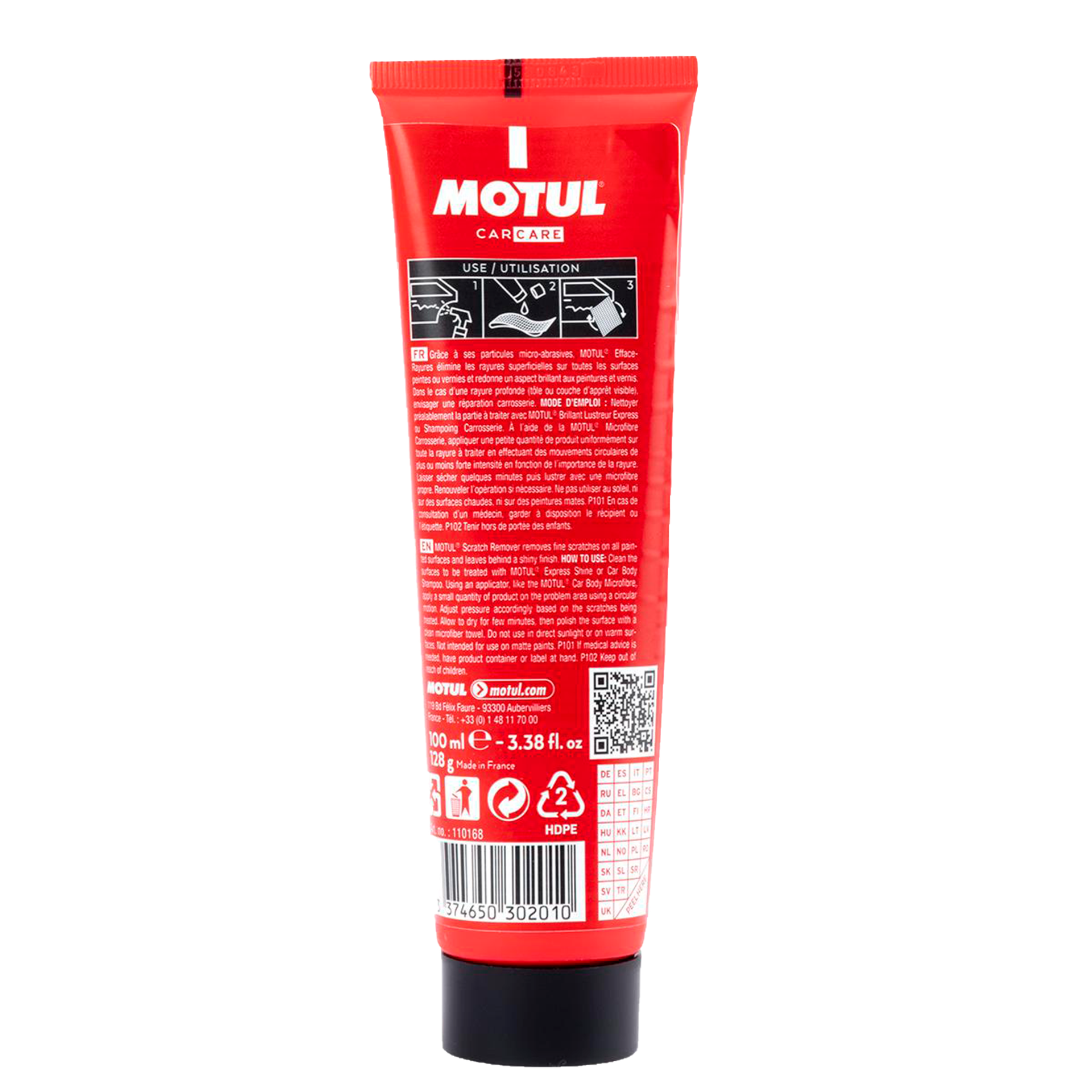 MOTUL Elimina Arañazos es perfecto para rayadas superficiales leves. En caso de rayas profundas (hoja de metal o imprimación visible) se debe considerar la reparación de la carrocería.