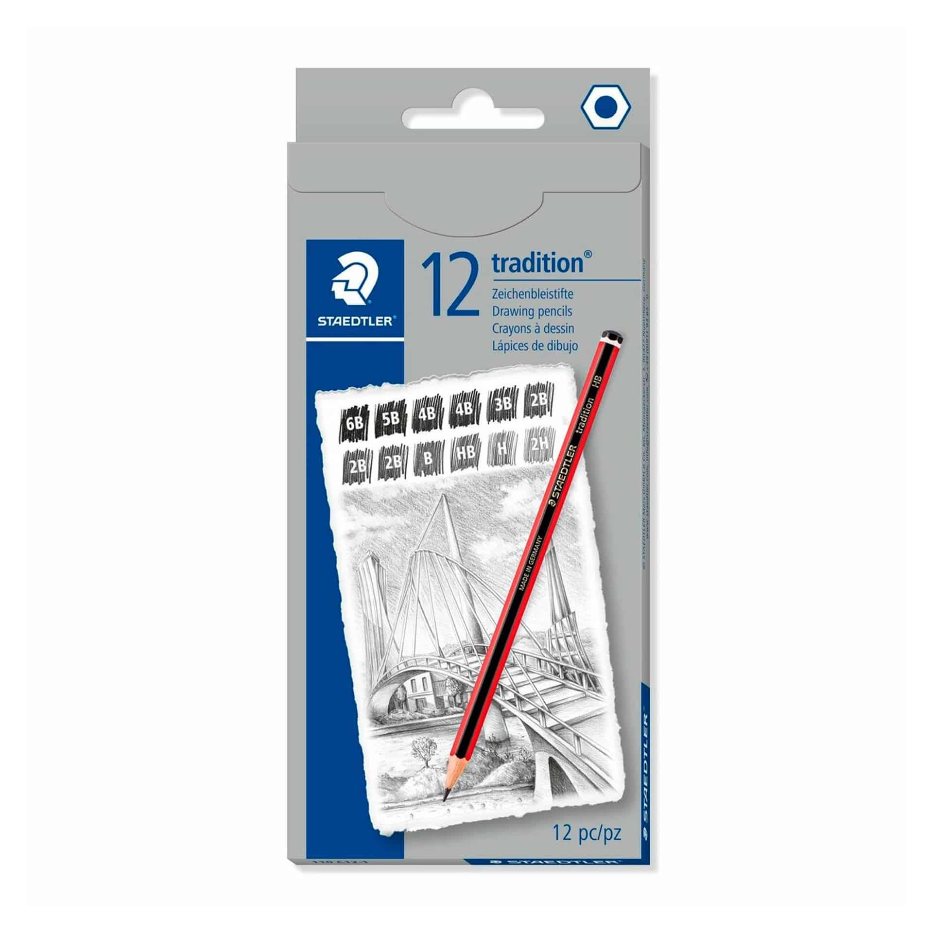 – 12 graduaciones 6B, 5B, 4B, 3B, 2B, B, HB, F, H, 2H, 3H y 4H.