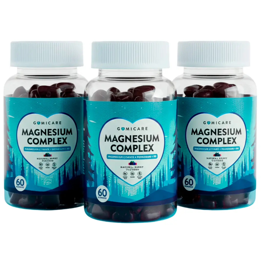 Magnesium Complex de Gomicare es un complemento alimenticio en forma de gominolas veganas sin azúcar, con sabor natural a frutos del bosque, pensado para el descanso y el equilibrio muscular. Su fórmula se basa en magnesio en forma de citrato, potasio y vitamina B6: el magnesio y el potasio participan en la función muscular y en el equilibrio electrolítico, por lo que se utilizan habitualmente en rutinas de recuperación tras el ejercicio o días físicamente exigentes, mientras que la vitamina B6 contribuye al metabolismo energético y al funcionamiento normal del sistema nervioso.