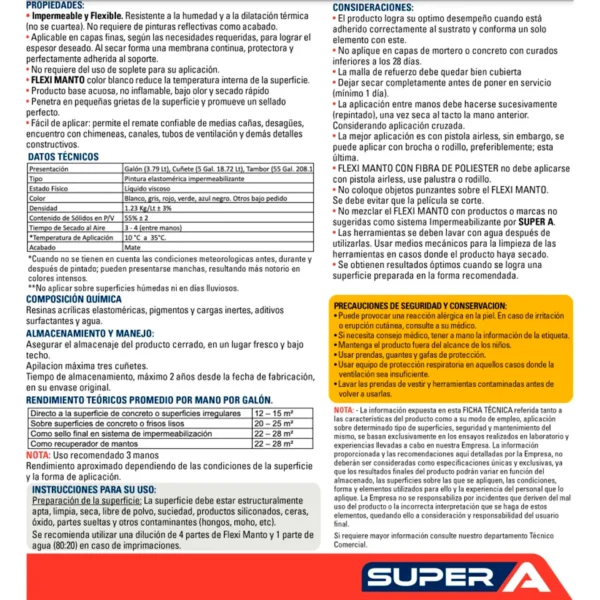 Impermeabilizante Acrílico Elastómerico Flexi Manto Super A Galón