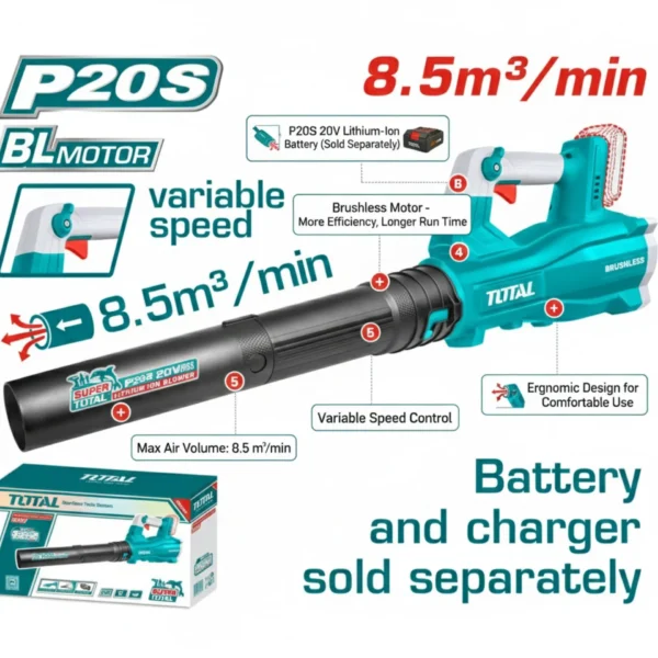Soplador Inalámbrico Total 20V 18500rpm